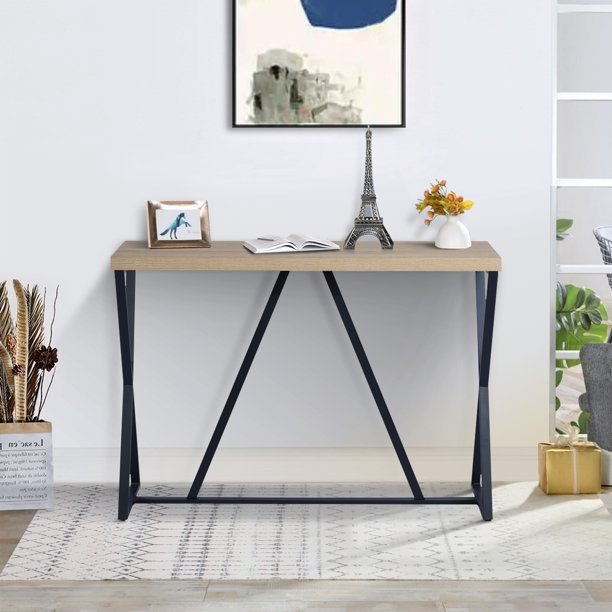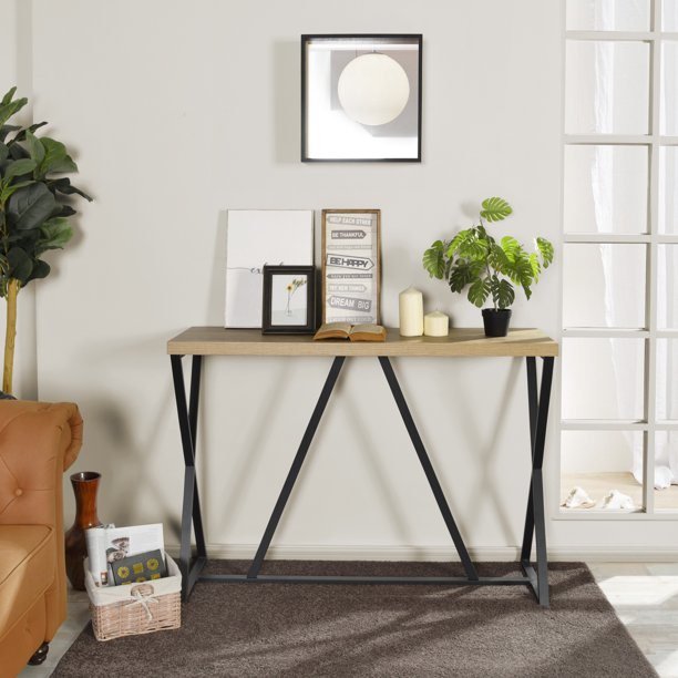 47.2'' Sofa Table; Wood Rectangle Console Table with Metal Frame